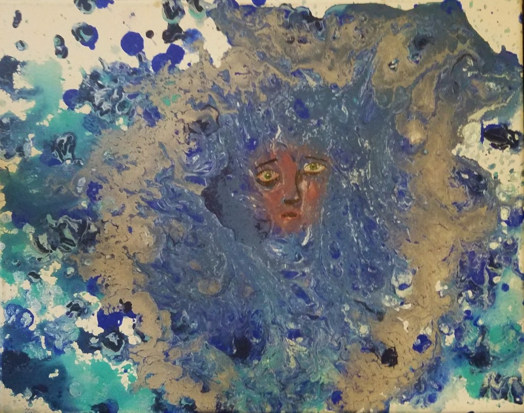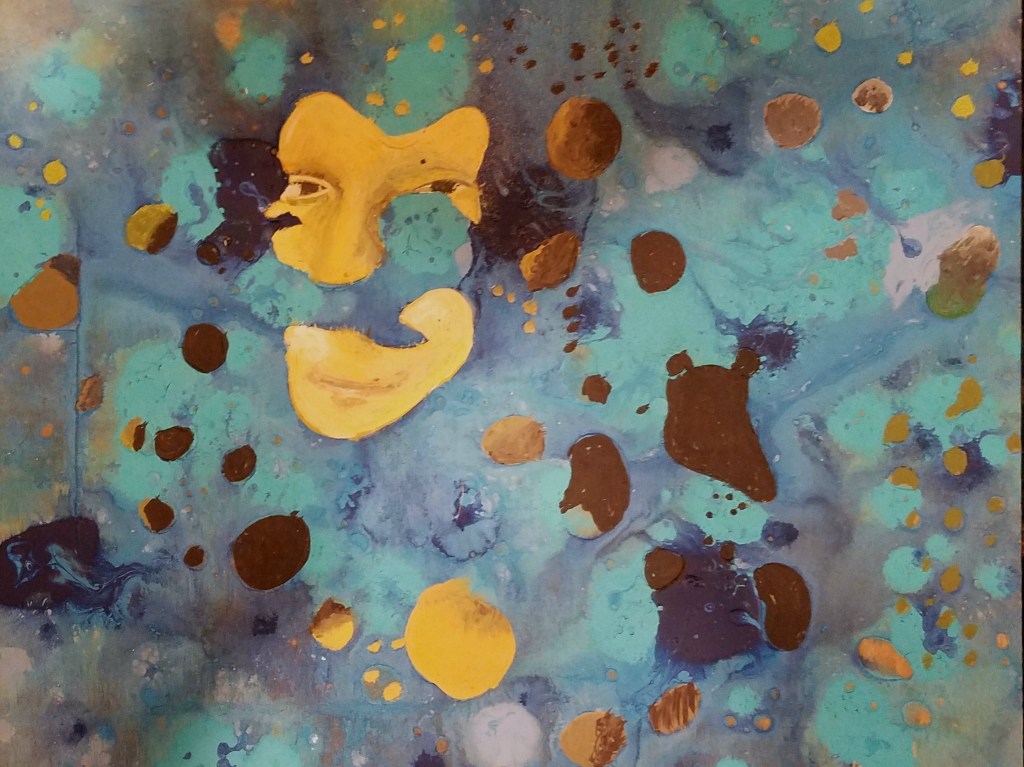 From a pour painting that went south quickly. Each attempt to fix it just made a bigger mess. Finally quit while I wasn’t too far behind and stared at it. This is what I came up with.