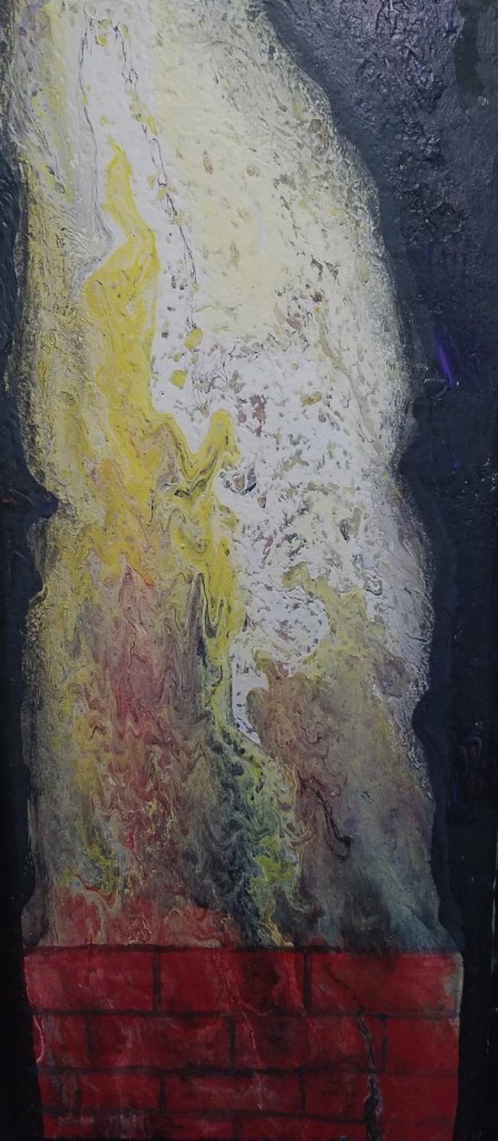 From a sheet with multiple layered pour painting experiments. Sat for a long time until Melissa commented she could see a Lamb face in it. Whipped out my handy brush and the rest is history! One could argue that this belongs in the Fire Pit, but I like it and it’s my gallery!