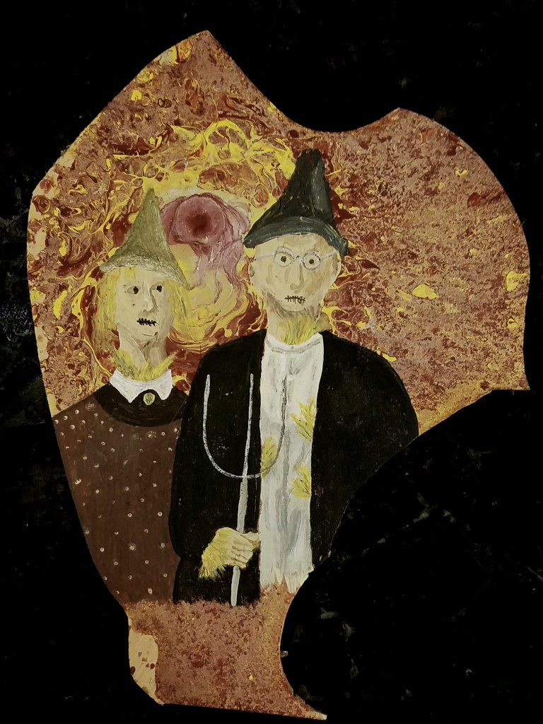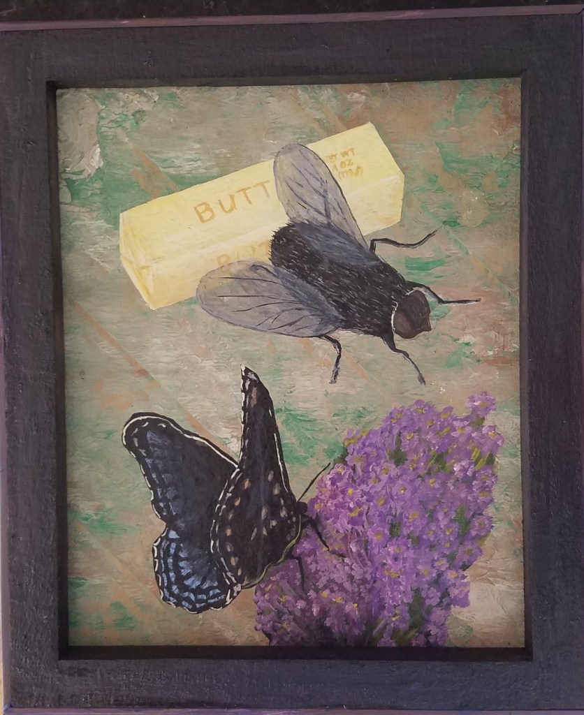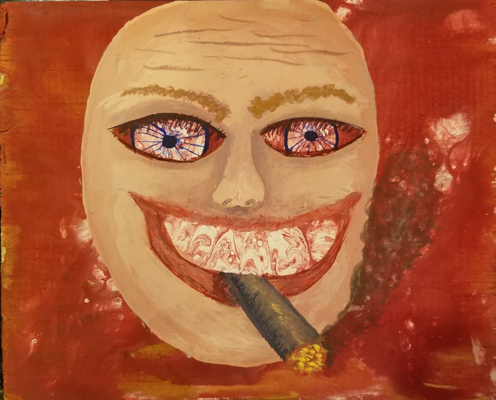 Another attempt to create something out of a failed pour painting. It’s certainly not winning any awards for artistry but it cracks me up whenever I look at it, so it makes it to the gallery, just barely.