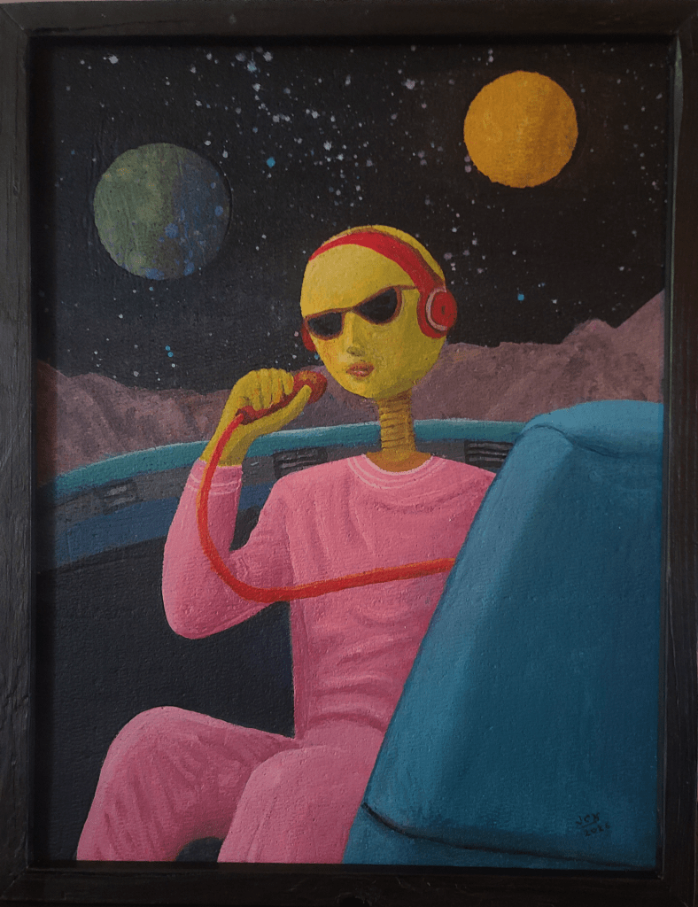 In the process of re-entering one of my other hobbies by building a mini music studio in the basement. Of course, part of the fun is being able to furnish and decorate it. This is the first piece of artwork I created. There will be many more and a great subject for when I feel like painting but have “artist’s block” and can’t think of a subject.