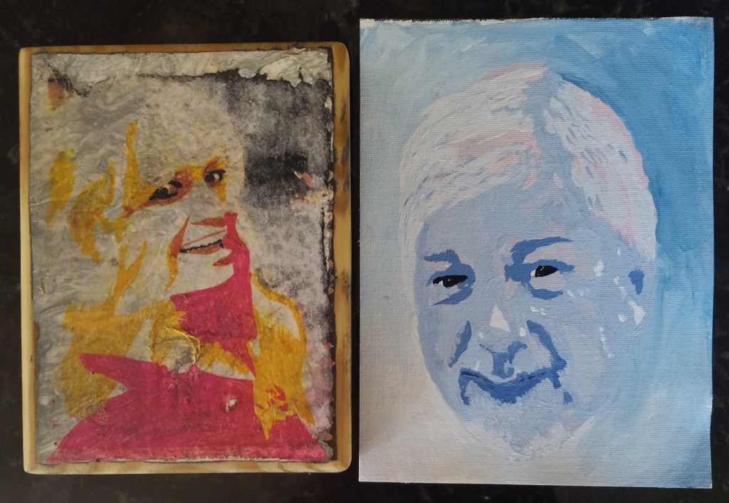 I enjoyed the puzzle painting so much, I decided to do one on my own. I took a picture of my wife, removed about half the detail. I lightly traced the outlines of the different area and wrote letters on them so I’d know what part of the painting they’d be. I then picked each piece randomly and painted it. I did just a bit of touch-up after re-assembling it. Personally, I think it’s “different” and like it as just a fun painting exercise.