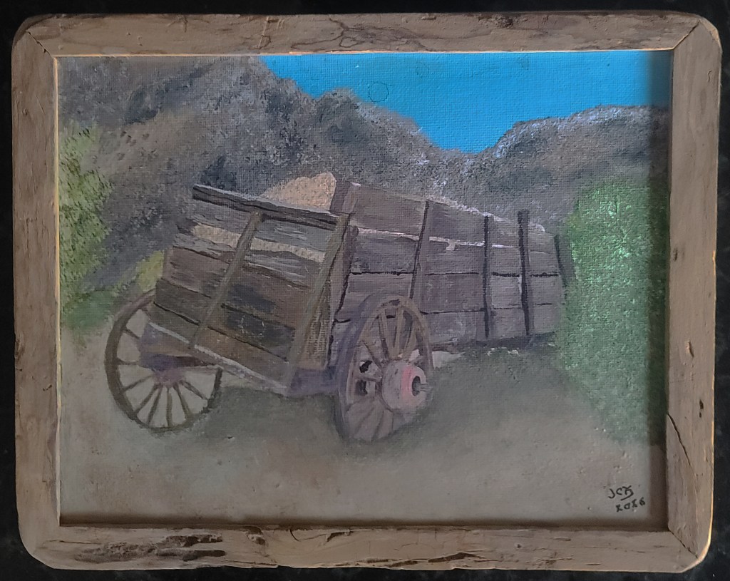 A record for me; I started this somewhere around 2019 and finished it in 2026. Interestingly, the wagon was to my liking in the first attempt; it was the rest of the painting I couldn’t get how I wanted it. I repeatedly worked on it, got frustrated and put it aside for long periods of time. Finally, while still not exactly how I wanted it, I considered it “good enough” and called it done.