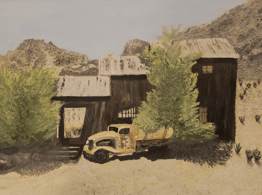 From a photo I took in the ghost town outside of Vegas in Eldorado Canyon. This was my first lesson in how to paint shadows. After many, many attempts I started to learn how to do it. Lots of great critical help on this one from my brother and my wife.