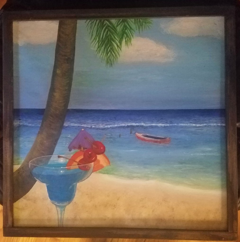 Created from a picture we took on a cruise. Used photo software to apply styling and alter colors. Then painted it.
