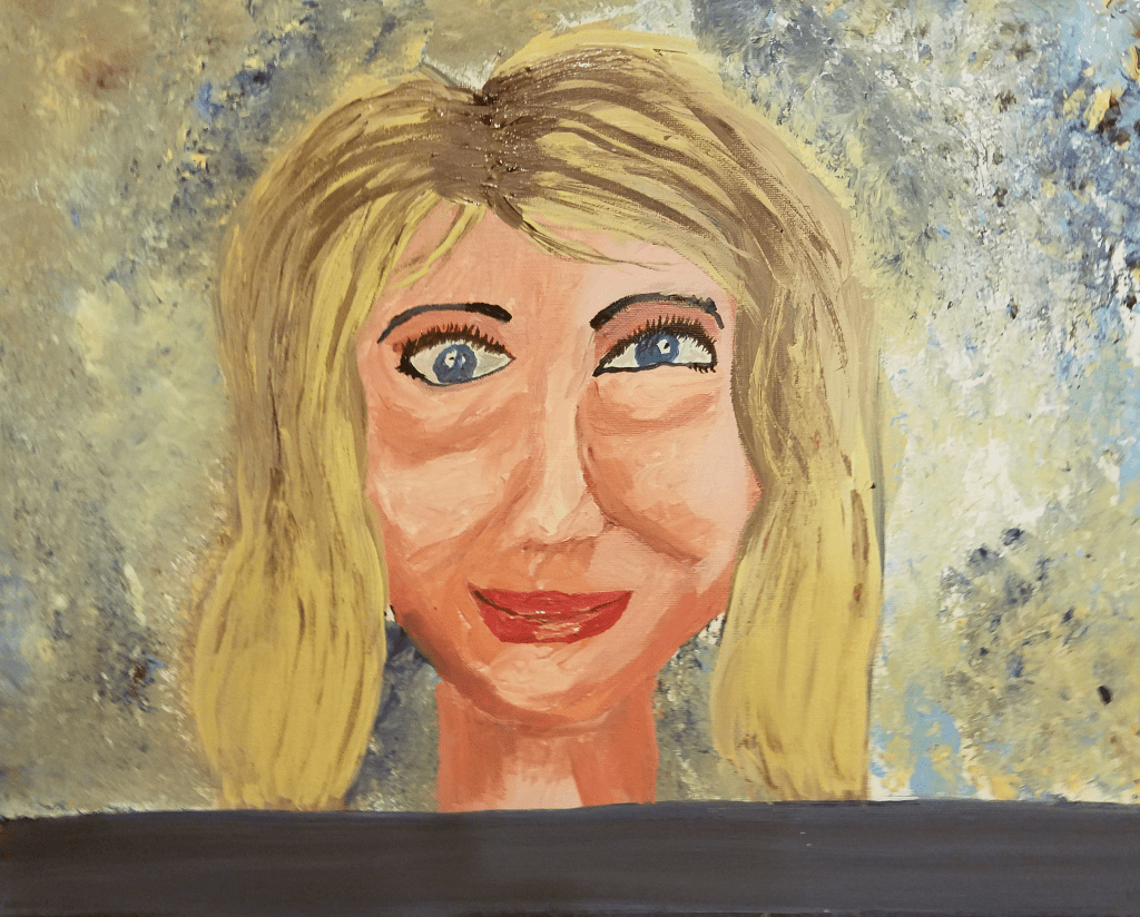 Acrylic on a waste of perfectly good canvas. This is where the Buckworth family paintings started.